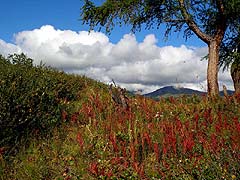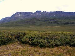 сопки, сильно заросшей карликовой березой, сквозь которую иногда надо