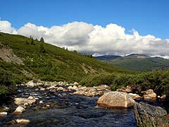 После небольшого перевала, спустились в долину ручья Мукыр и двинулись