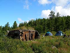 охотников. Метрах в 100 внизу незлобно шумел ручей. Лиственничный лес