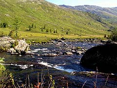 еще ниже по течению Мукыра и оказались в широкой заросшей карликовой