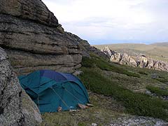 всего, что легче 3 кг. Палатки ставили за выступами скал, придавливая